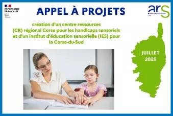 - Appel à projets pour la création d’un centre ressources (CR) régional Corse pour les handicaps sensoriels et d’un institut d’éducation sensorielle (IES) pour la Corse-du-Sud
