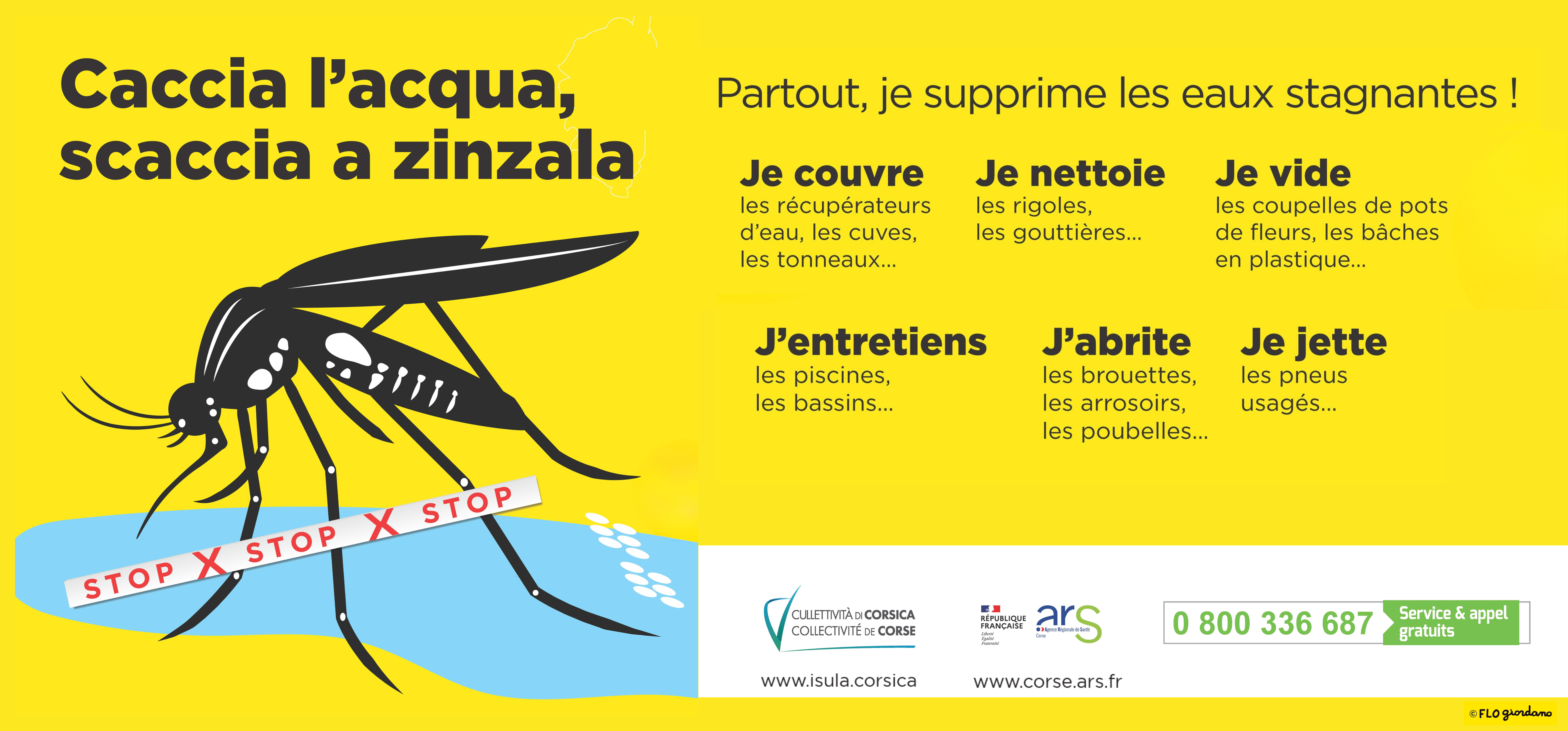 L’ARS Corse rappelle qu’en présence de symptômes évocateurs de la dengue, du Zika ou du chikungunya, en particulier s’ils apparaissent dans les 3 semaines qui suivent le retour d’un voyage en zone de circulation du virus, il est important de se protéger contre les piqures de moustiques, de limiter ses déplacements et d’appeler immédiatement son médecin traitant.