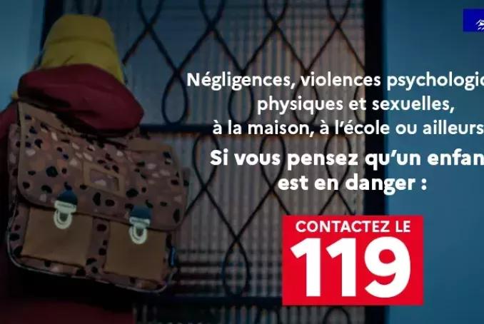 « Négligences, violences psychologiques, physiques ou sexuelles, à la maison, à l’école ou ailleurs, si vous pensez qu’un enfant est en danger : conta ...