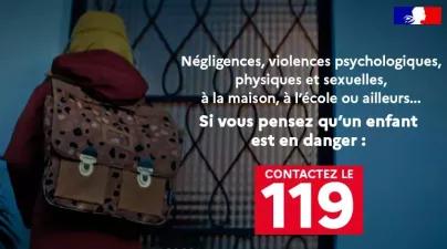Déployée à l’échelle nationale, cette campagne encourage le passage à l’action en faisant connaître le 119, numéro national d’appel et site web de l’enfance en danger (www.allo119.gouv.fr), confidentiel, gratuit et accessible 24h/24, 7j/7, pour toute information sur le 119, avec possibilité de remplir un formulaire en ligne et de converser par tchat pour les moins de 21 ans. Au-delà de son rôle clé de prévention, d’orientation et de transmission vers les services compétents pour protéger les mineurs, le 119 est un espace d’écoute et de conseil, qui peut être sollicité même en l’absence de certitude. L’alerte est un levier essentiel de la protection des enfants contre les violences.